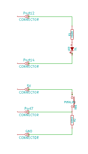 // 7番ピンに接続したスイッチが押されている間、12番ピンに接続した LED を点灯する